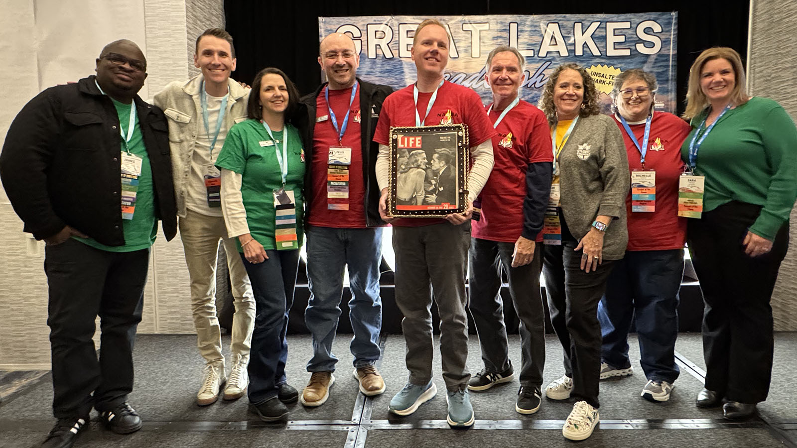 Several "Keepers of the Flame" pose for a photo at the 2025 National Conference on Student Activities to welcome Chris Seifert of Pennsylvania to the "Society".